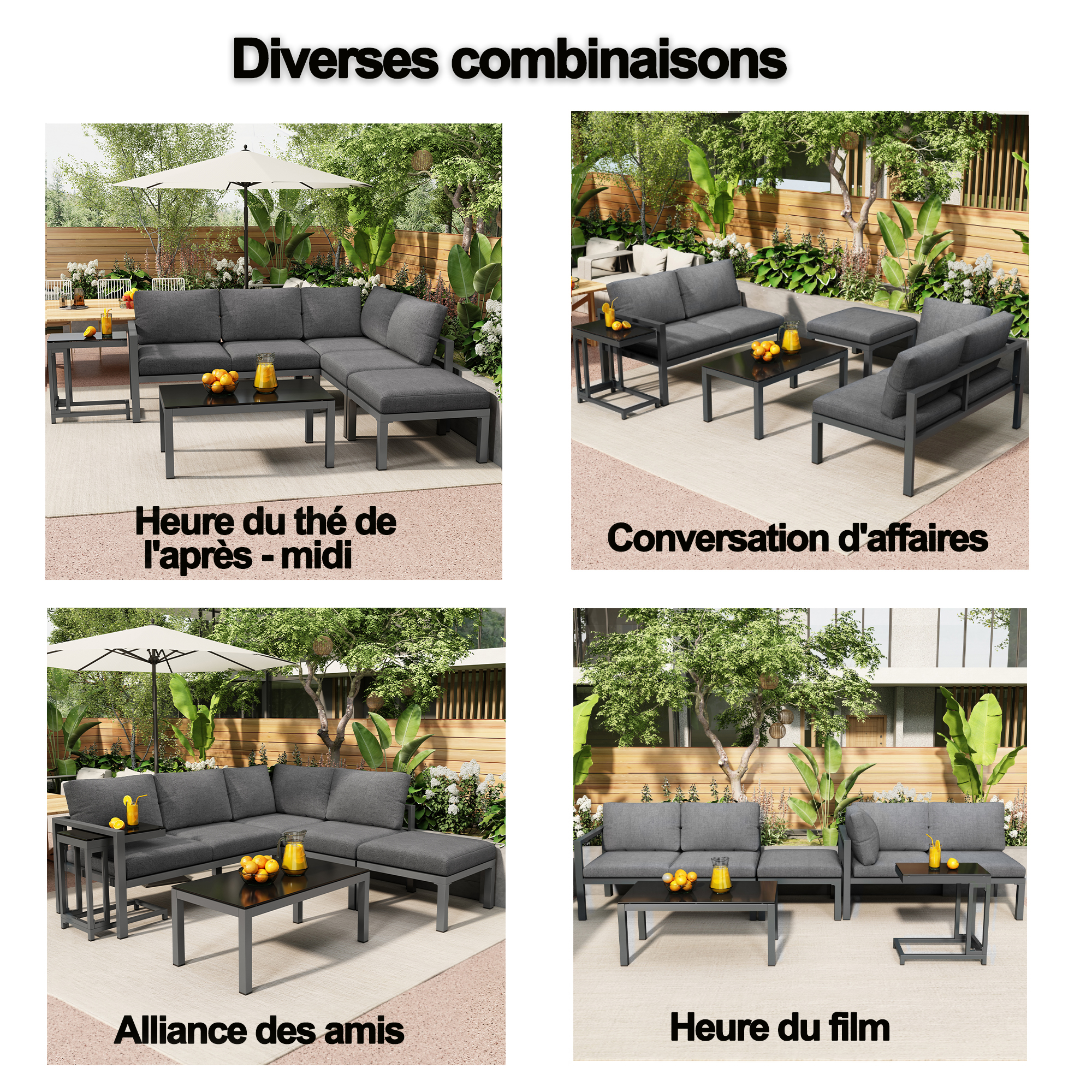 - Versatile combination: the 5-piece set includes 2 recliner sofas, a single sofa, a large dining table and a side table, offering flexible design options for different occasions. Whether for a garden party or a relaxing afternoon. Detailed assembly instructions are included for quick and easy installation.