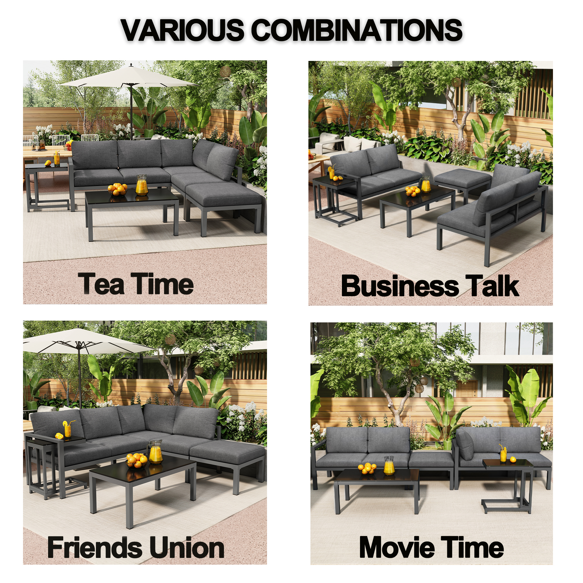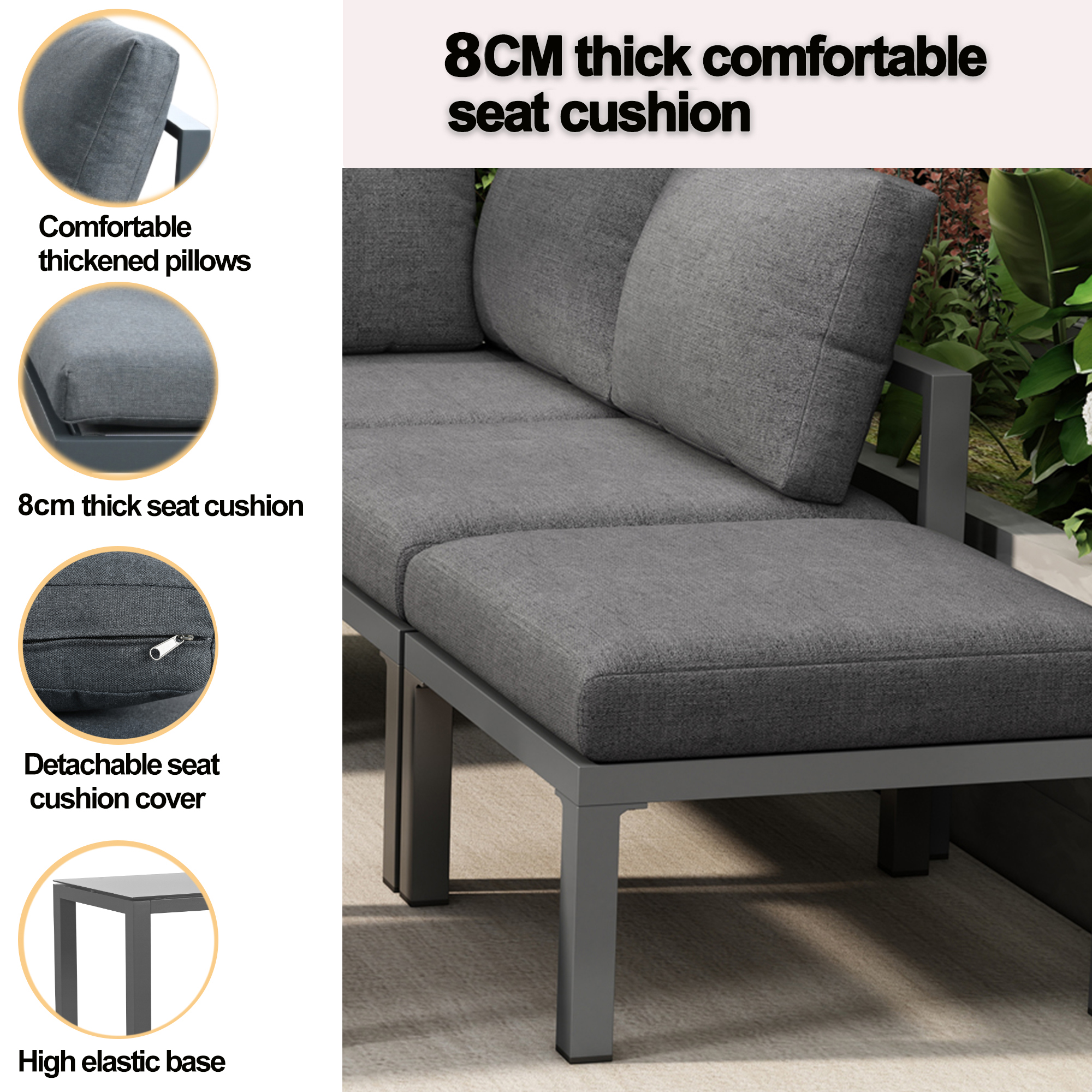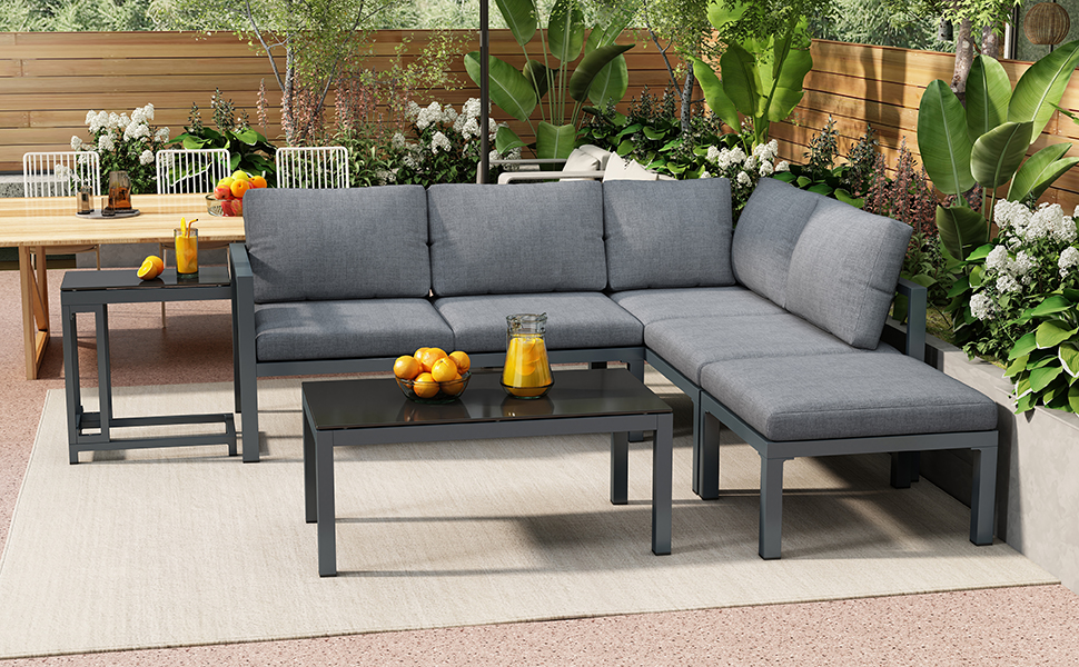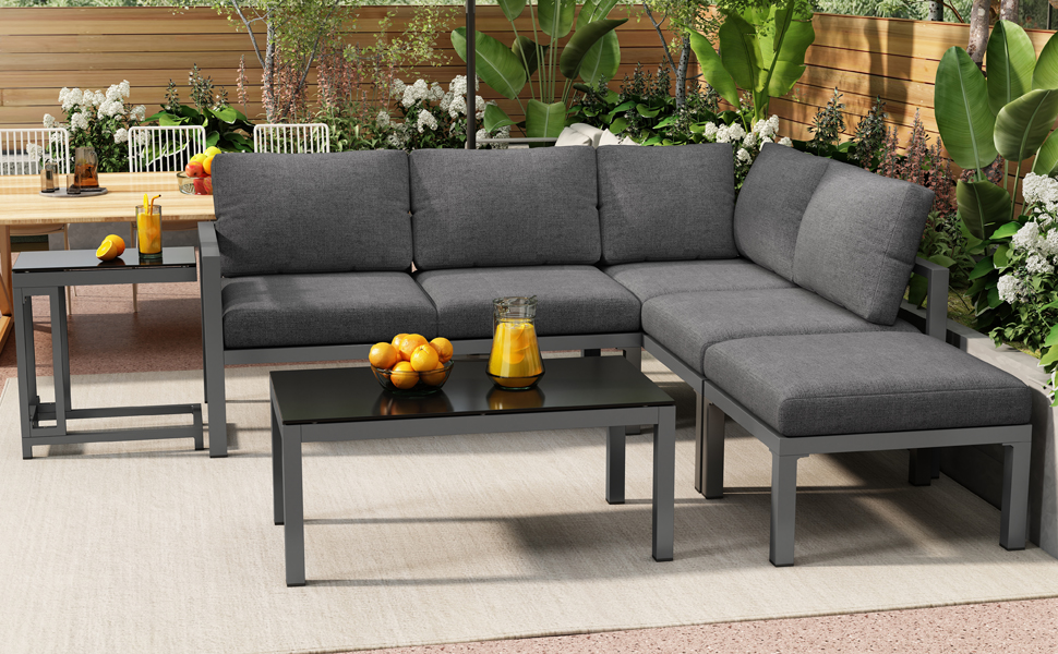 -Super comfy extra thick cushions Thick cushions ensure you can relax or dine in complete comfort. The sturdy frame is attractive and durable for years of enjoyment. This set brings a modern touch to your patio or backyard while giving your outdoor space a natural feel. -Multiple Uses You can make it just the way you want it, such as tea time, business meetings, entertaining friends, enjoying a movie time, and more.